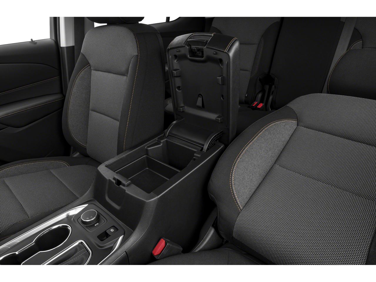 - Console, front center with 2 cup holders, covered storage bin with storage and removable tray